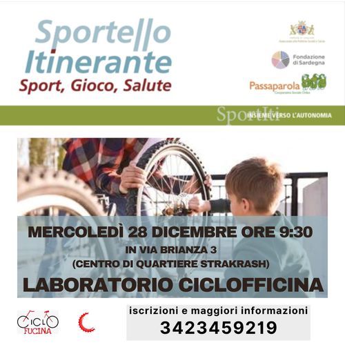 Laboratorio di ciclomeccanica Wednesday, Dec 28, 2022, 09:30 AM-11:30 AM Wednesday 28 December 11:30 Centro di quartiere Strakrash via Brianza 3, Cagliari ciclofficinaciclomeccanicalaboratorio